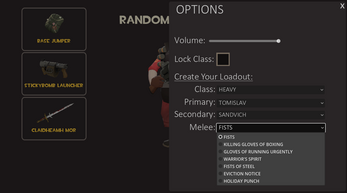 A small app I made that will randomly suggest various TF2 weapon loadouts, using some prebuilt sets based on popular subclasses, entirely random sets, or customizable loadouts based on your own weapon preferences. The current class can also be locked so only sets are rerolled, rather than both the weapons and the class.